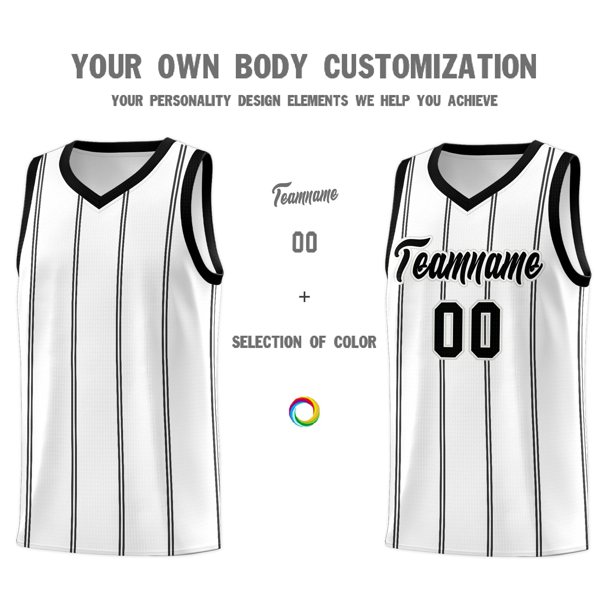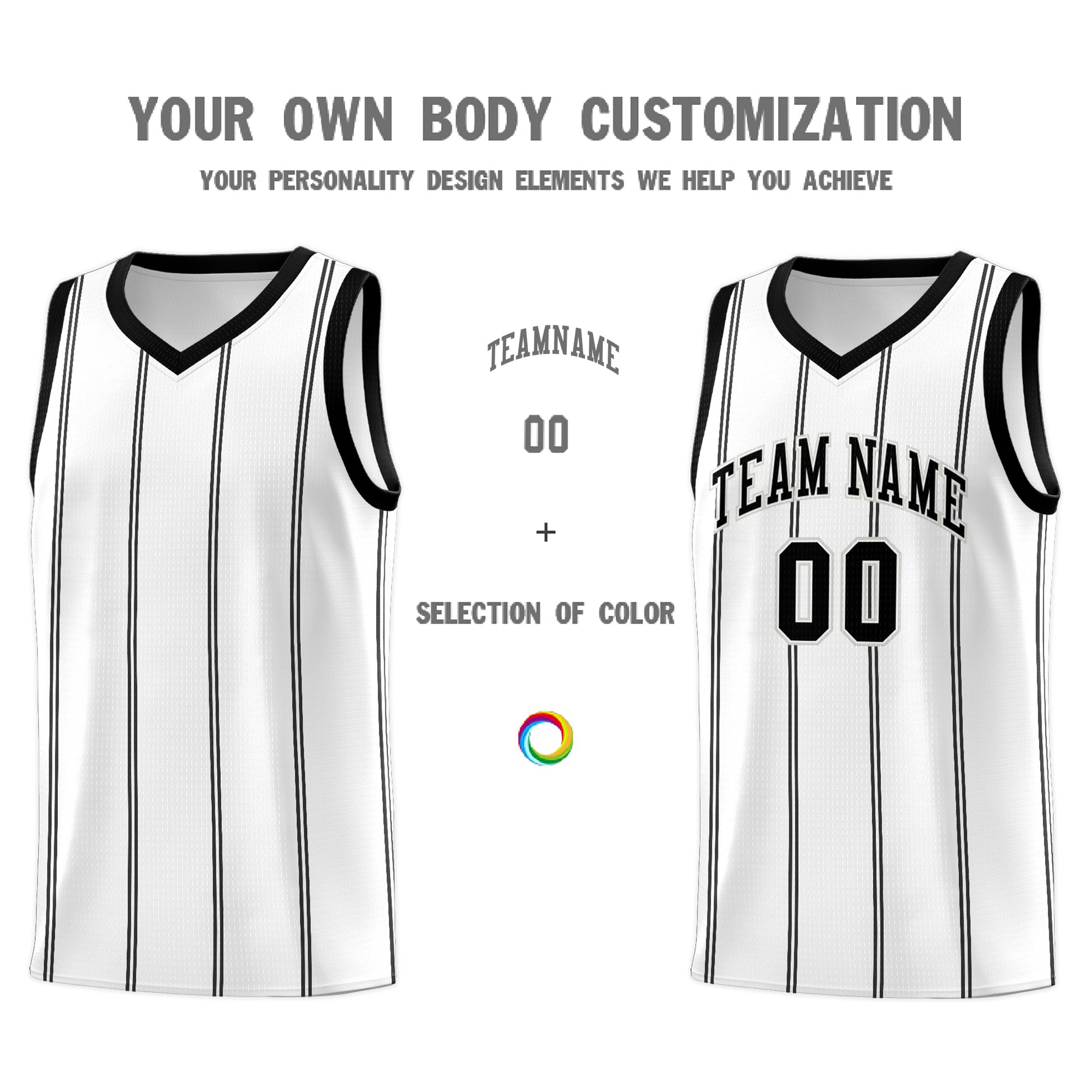 Custom White Black Gray Vertical Stripes Single Sided Sets Basketball Jersey