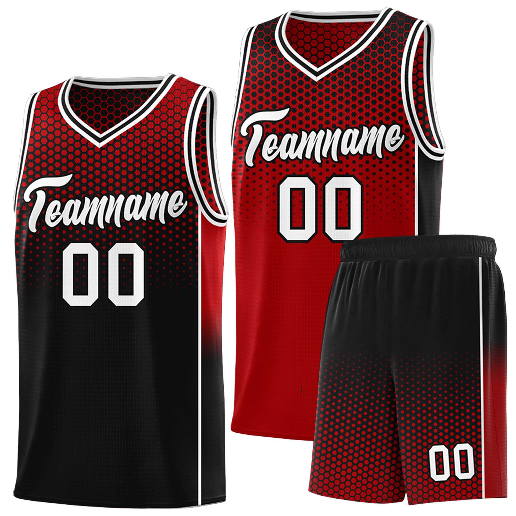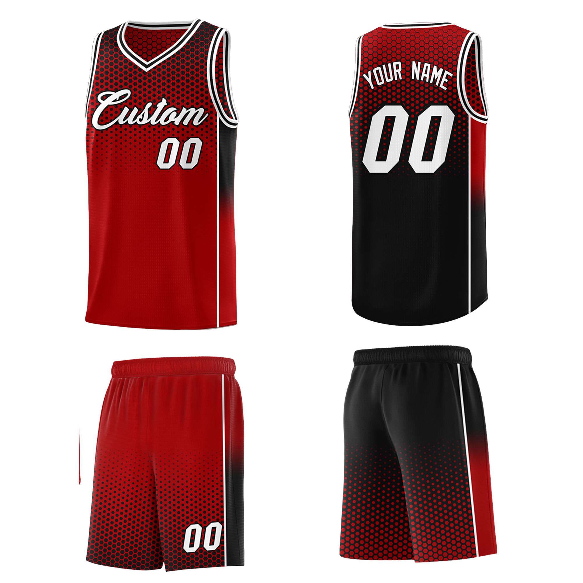 Custom Red Black Reversible Side Gradient Sports Uniform Dot Pattern Basketball Jersey Kits