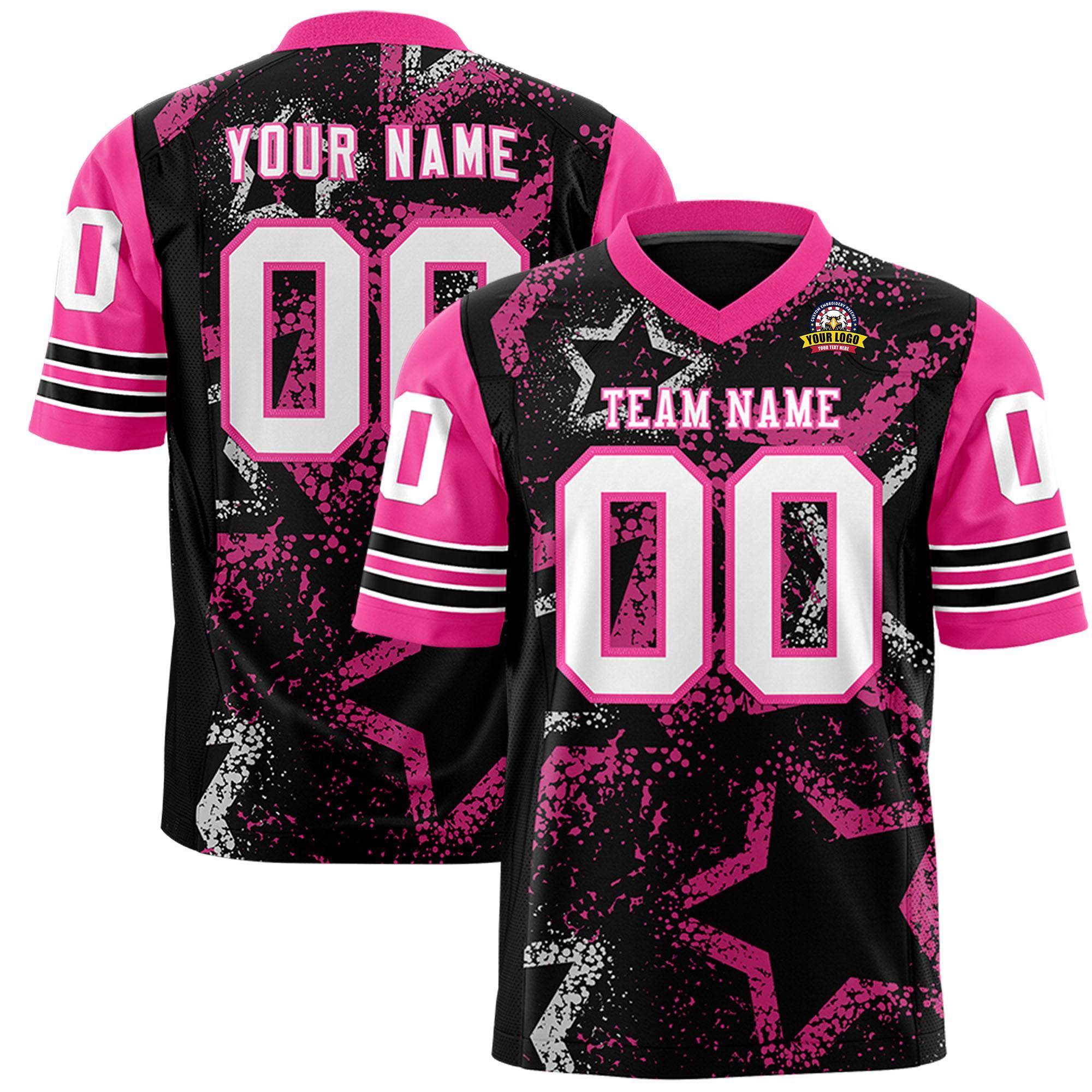 Custom Black Pink-White Personalized Star Pattern Design Authentic Football Jersey