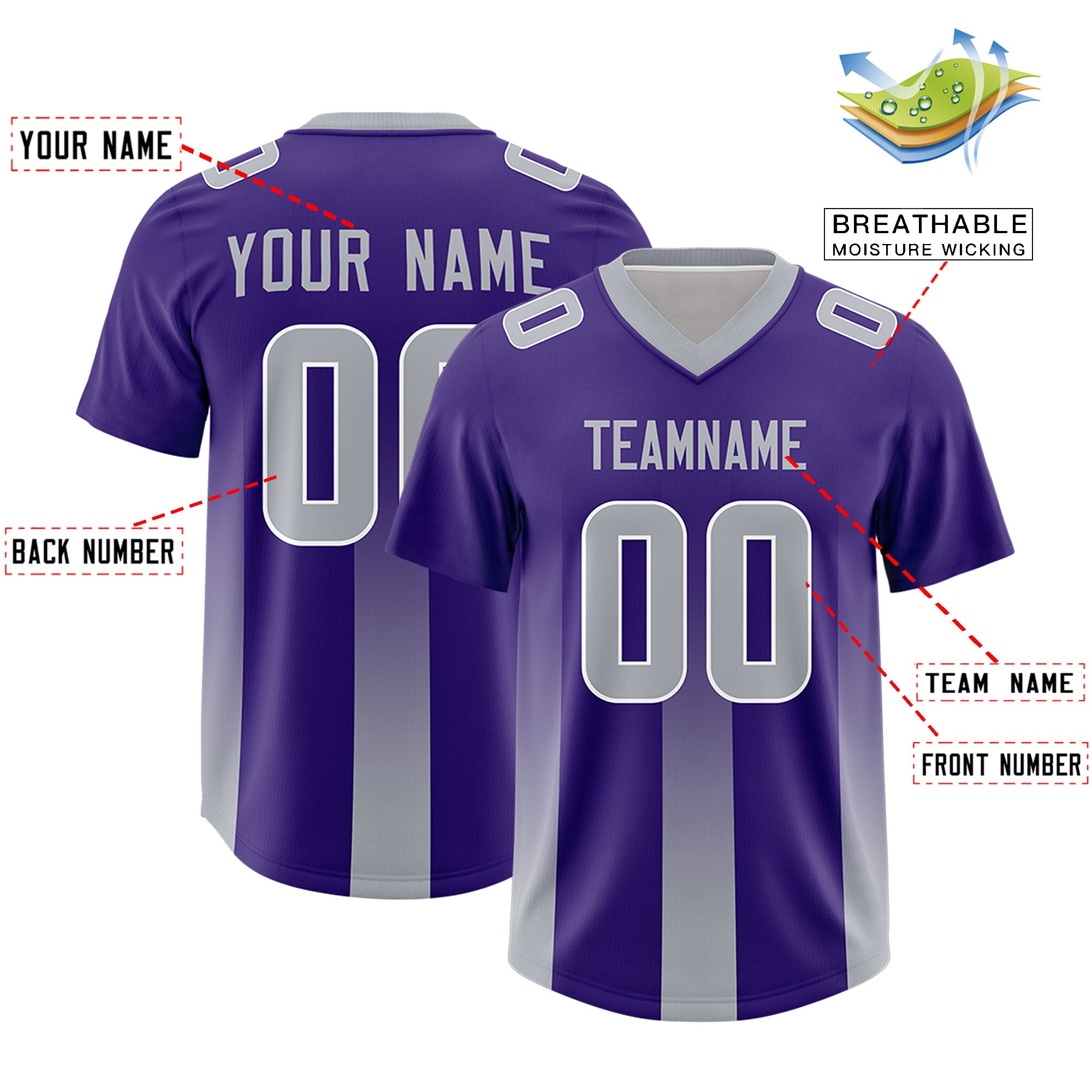 Custom Purple Gray Vertical Width Stripe Gradient Fashion Personalized Team Football Jersey
