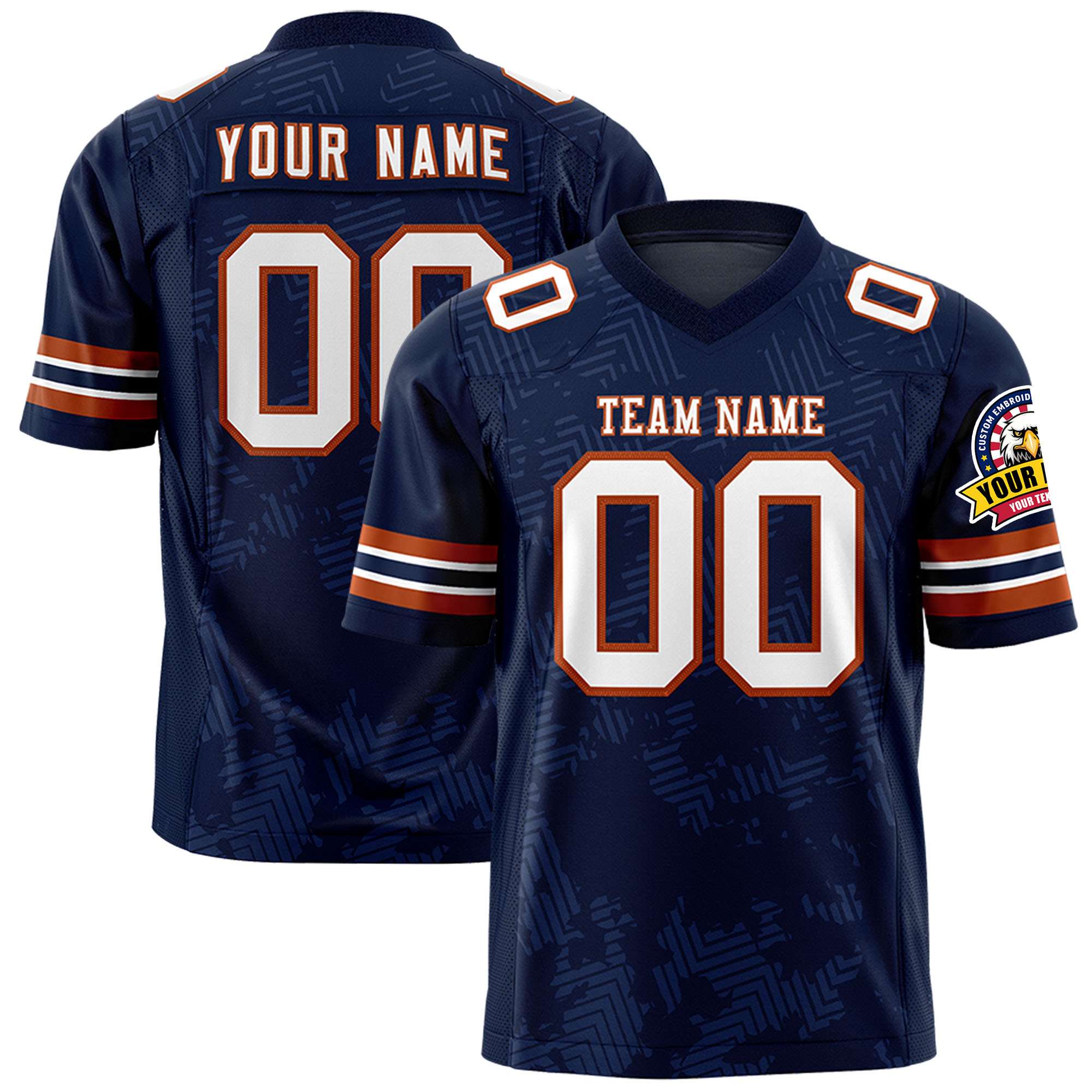 Custom Navy White-Texas Orange Personalized Graffiti Line Design Authentic Football Jersey