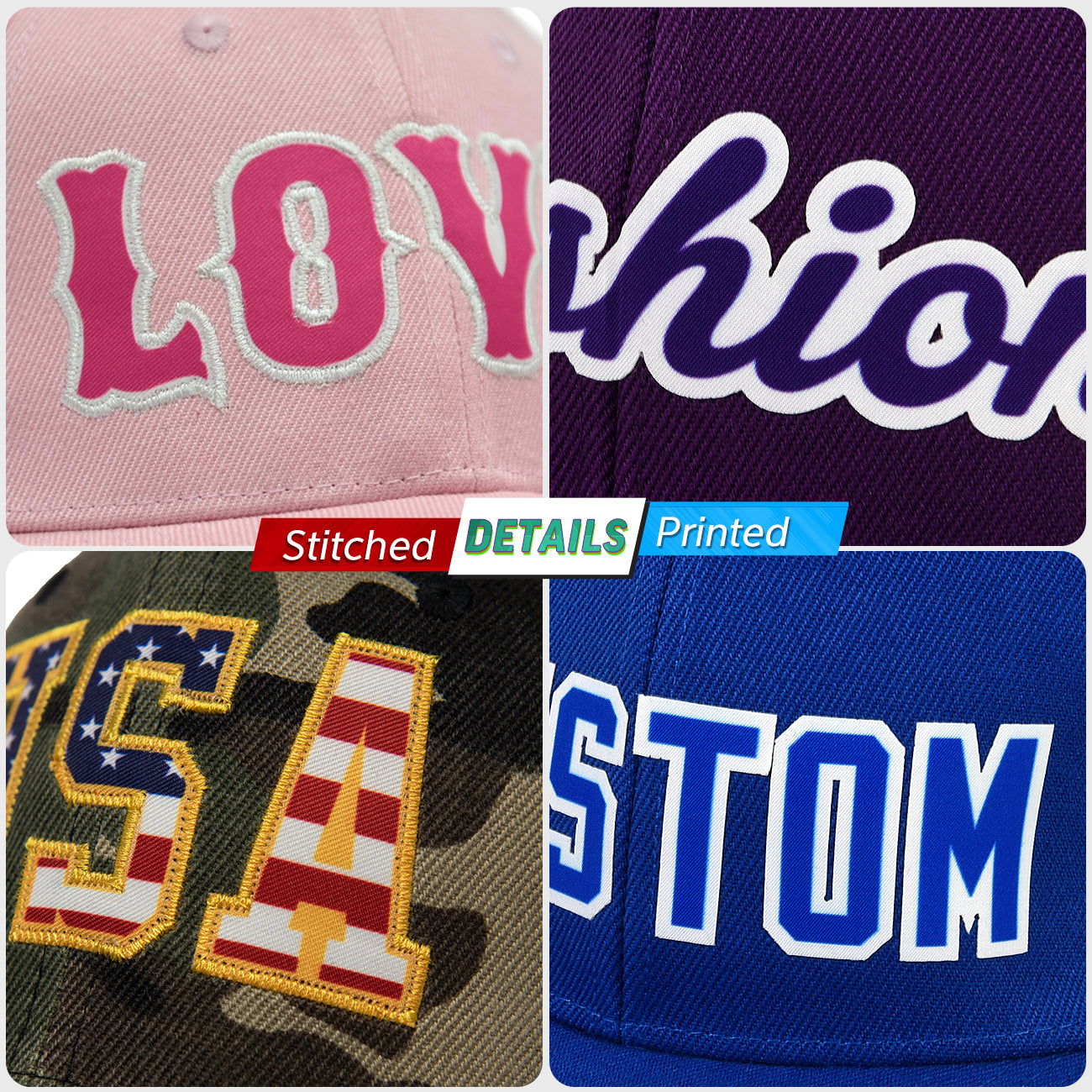 Combines bold 3D puff with a flat stitched outline for extra depth