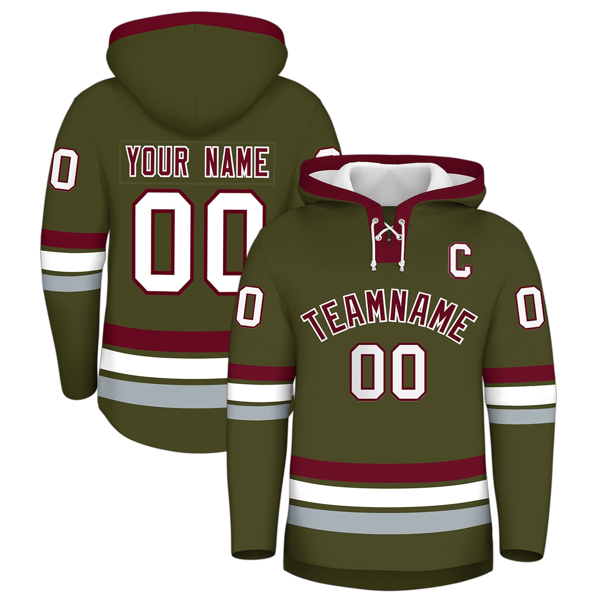 Custom Olive Crimson Classic Style Wrinkle-Resistant Lace-Up Neck Hockey Hoodie Jersey
