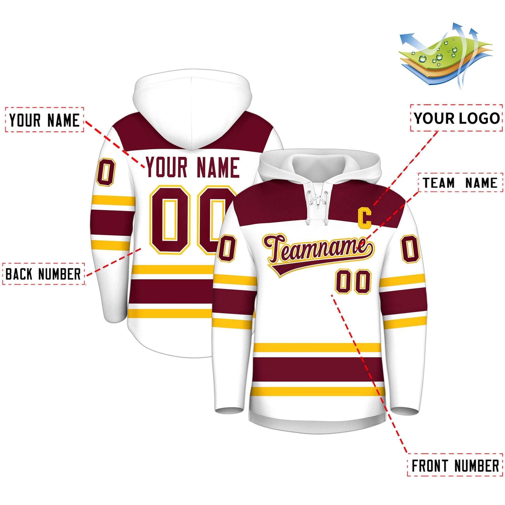 Custom White Crimson Raglan Sleeves Lace-Up Neck Breathable Hockey Hoodie Jersey