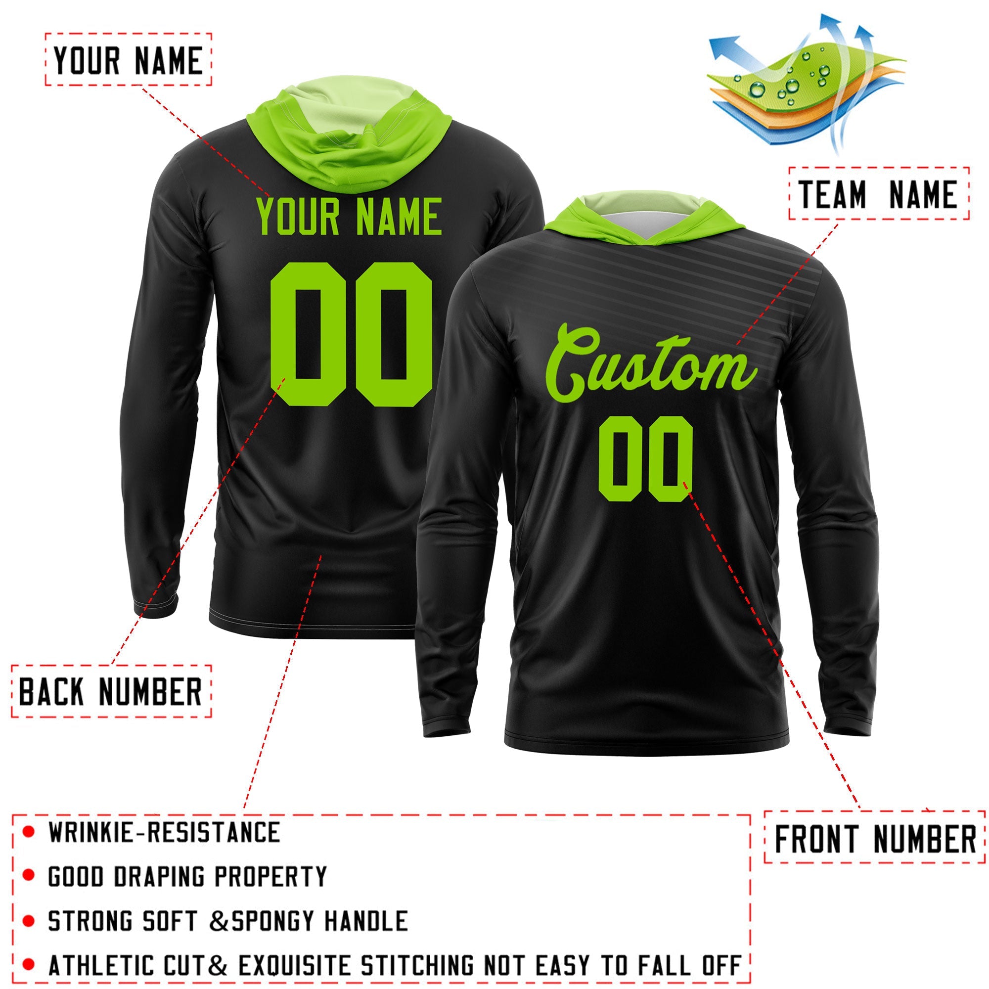Custom Black Neon Green Basketball Shooting Shirt Performance Training Quick Dry Hoodie