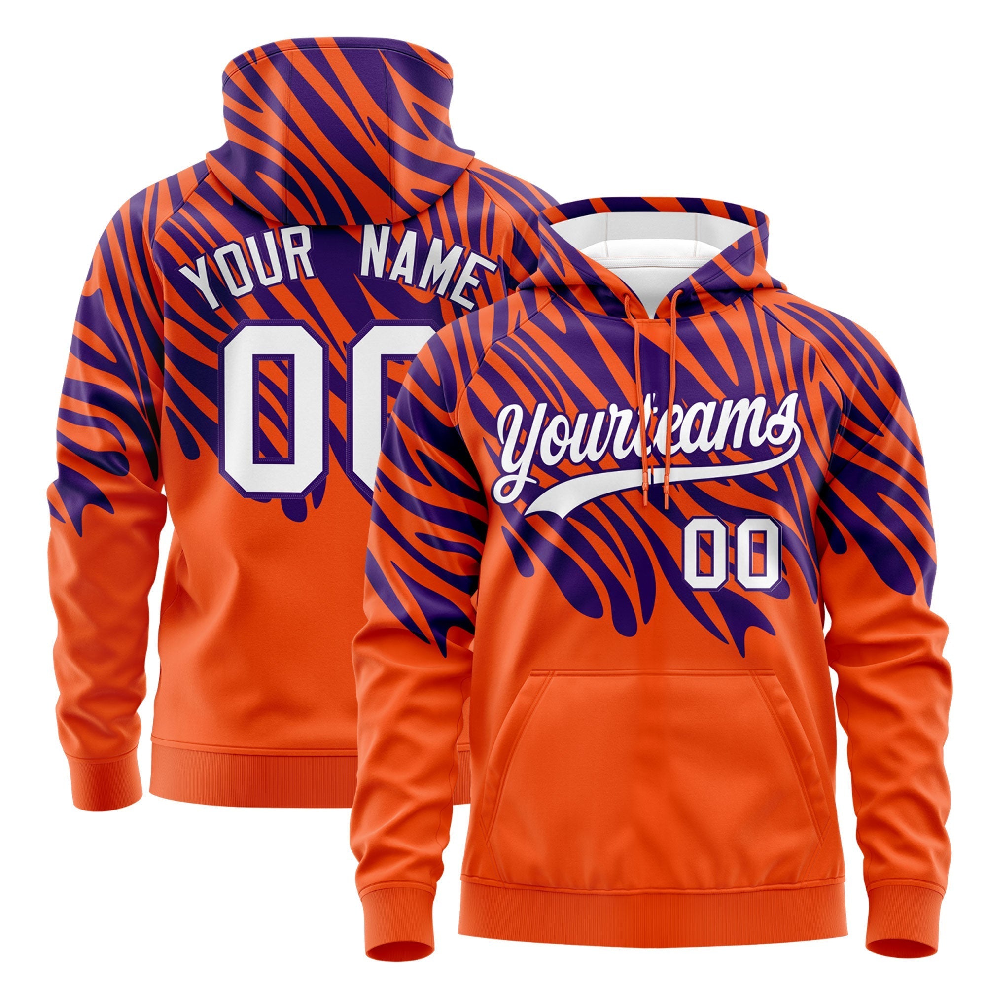 Custom Orange Purple Leopard Print Pullover Sweatshirt Hoodie