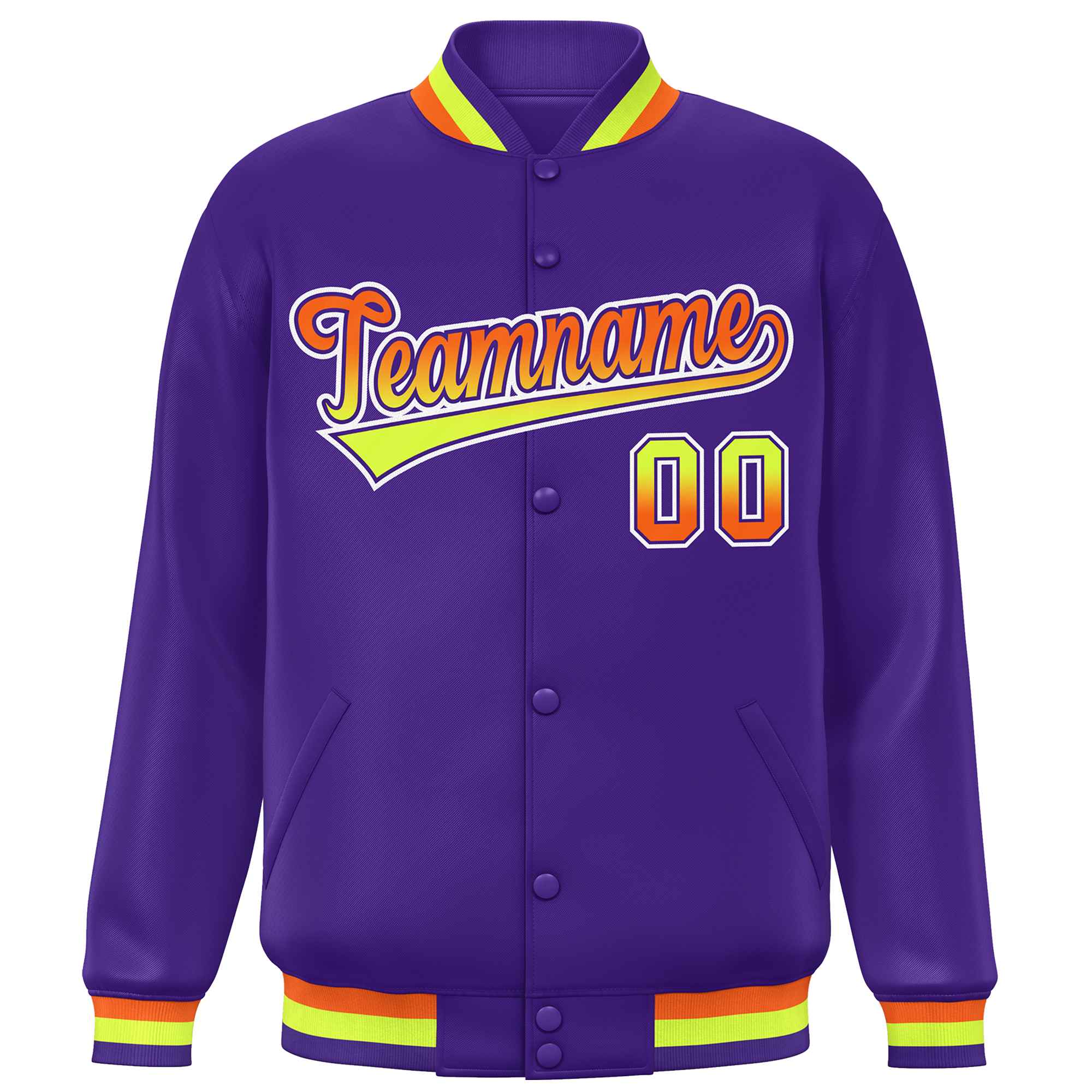 Custom Purple Varsity Full-Snap Gradient Font Letterman Baseball Jacket