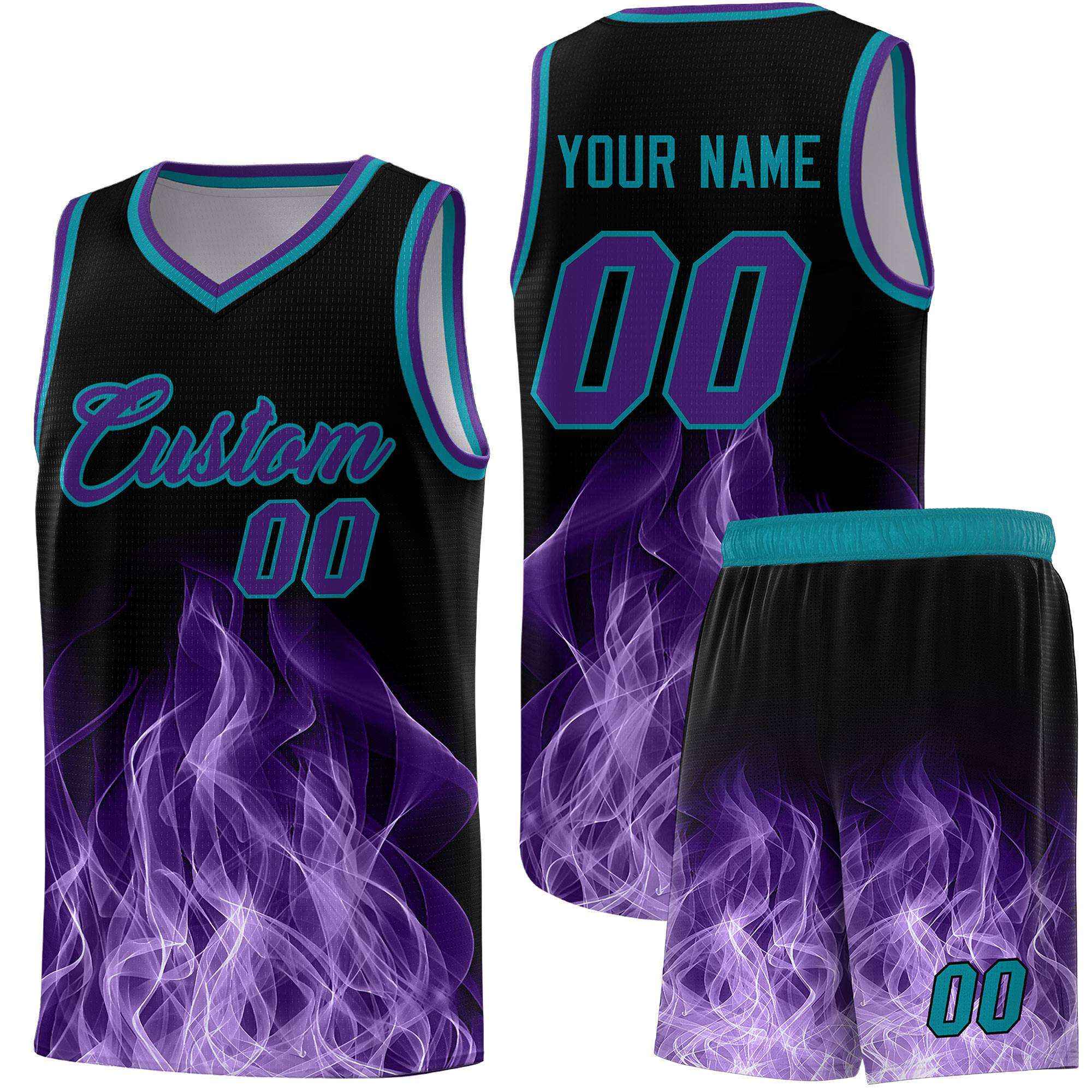 Custom Black Teal Flame Graffiti Pattern Quick-Drying Personalized Uniform Basketball Jersey