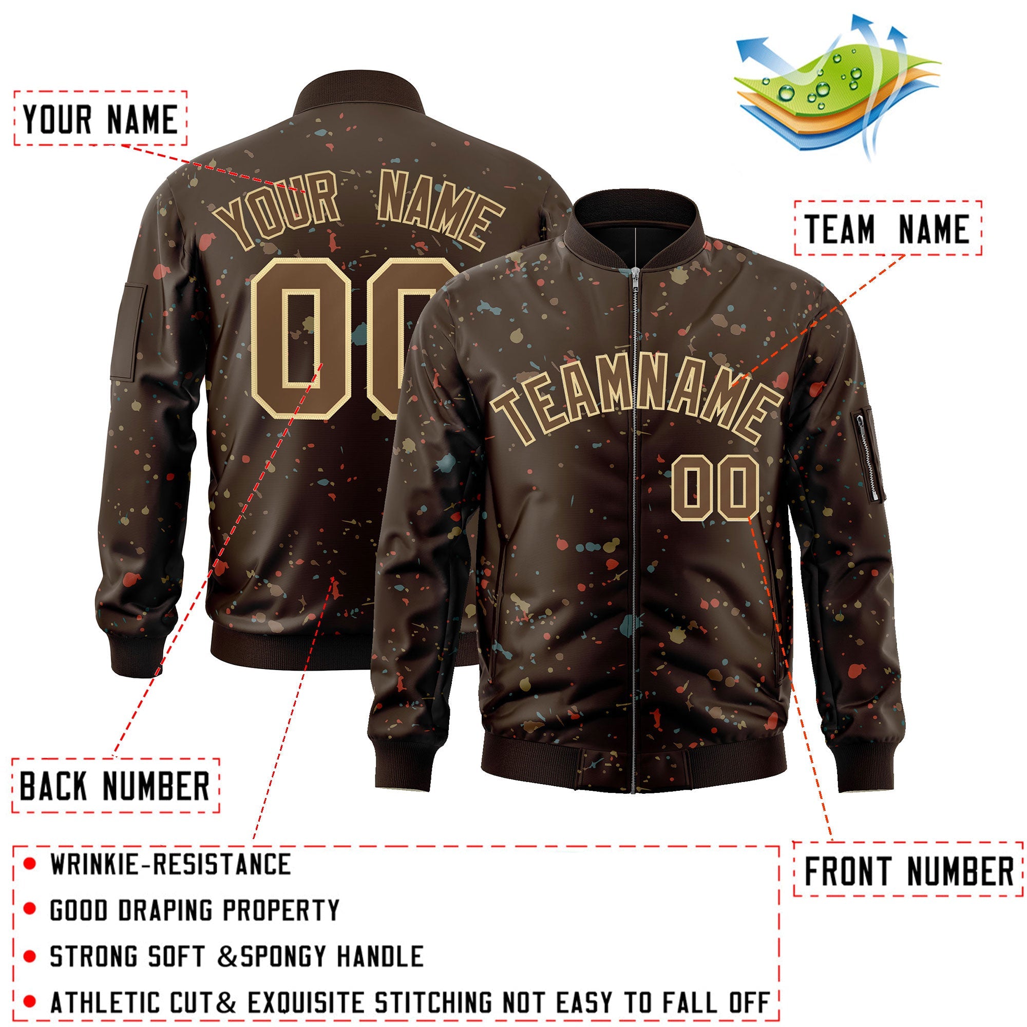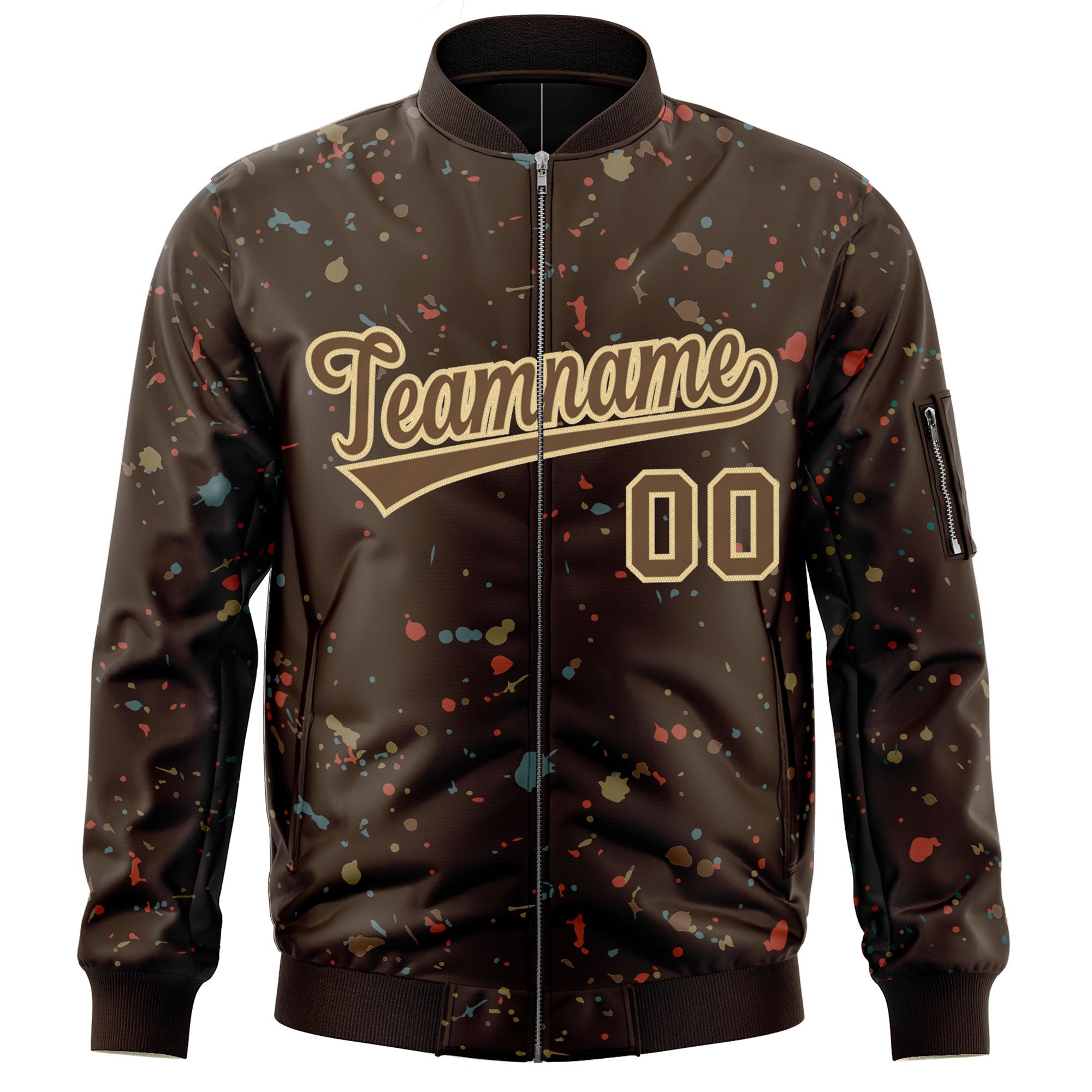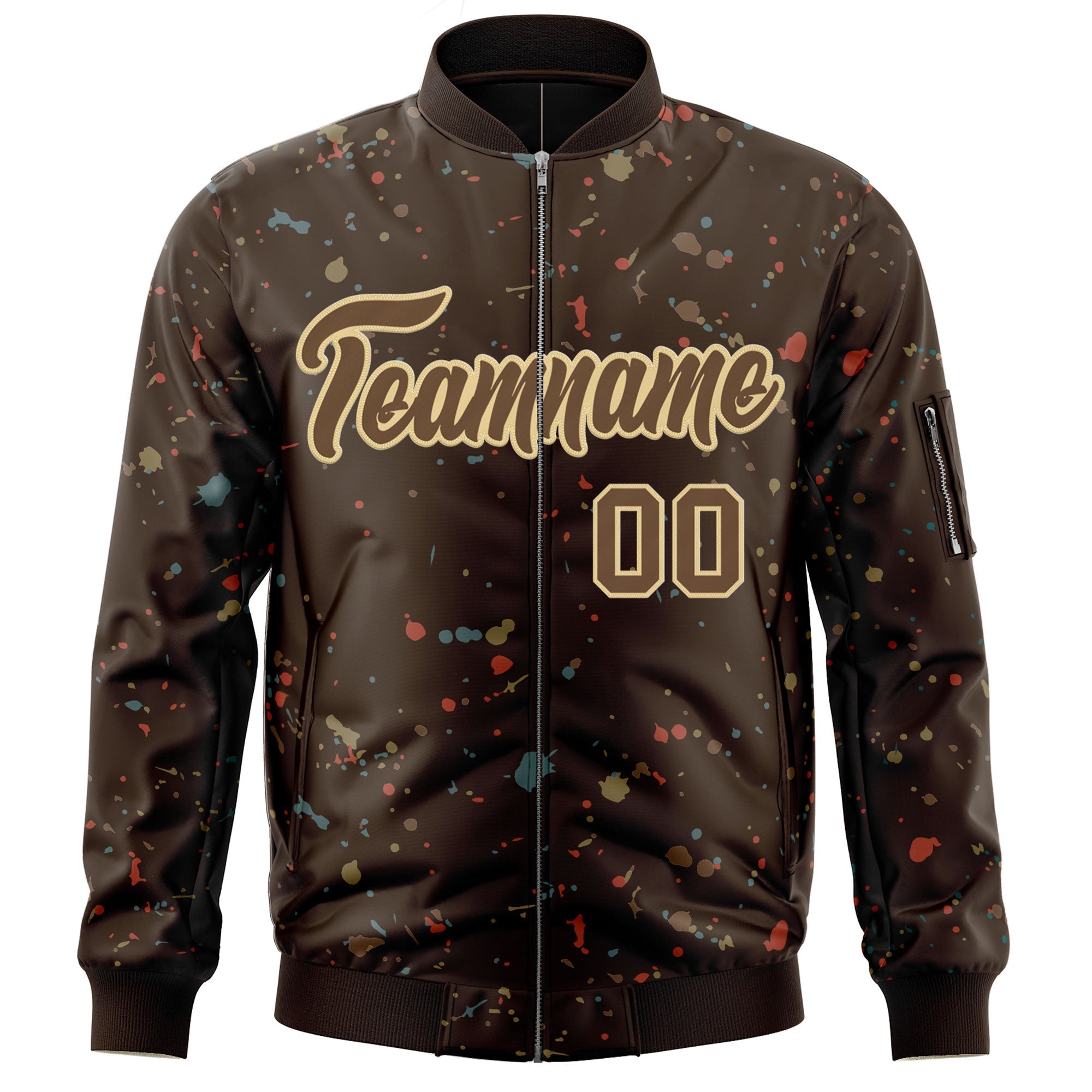 Custom Brown Khaki Varsity Full-Zip Splash Graffiti Pattern Letterman Jacket