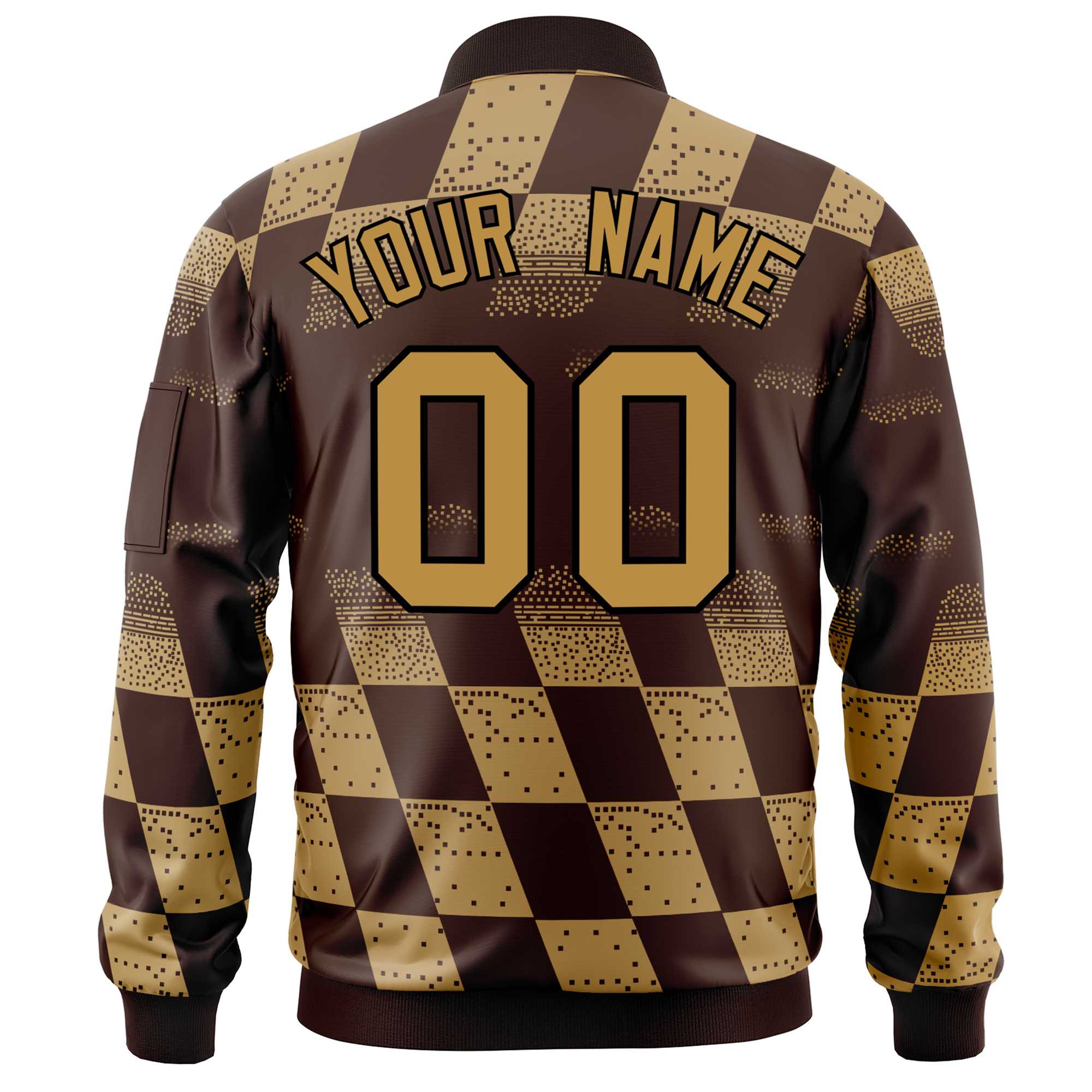 Custom Brown Old Gold Grid Varsity Full-Zip Color Block Letterman Bomber Jacket