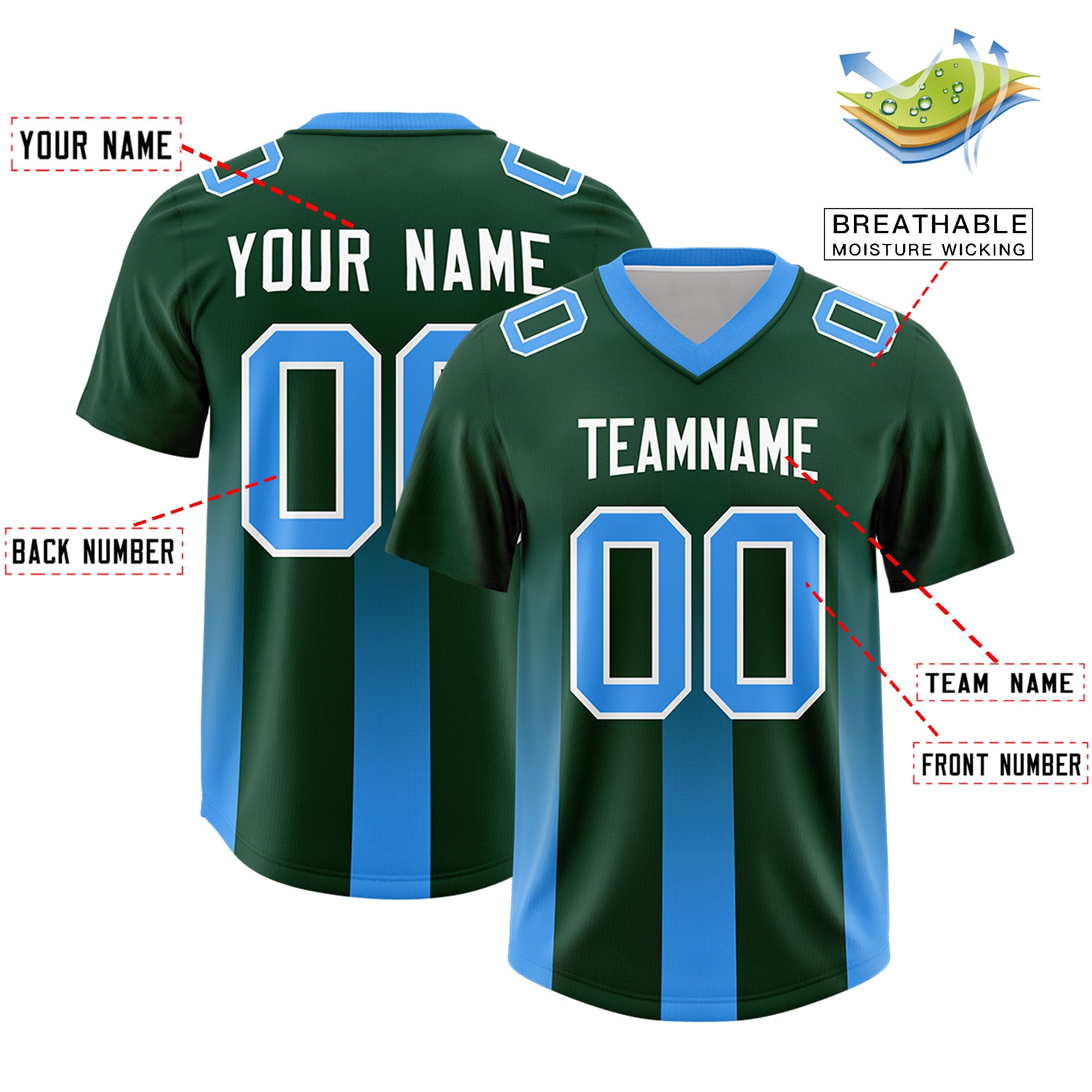 Custom Green Light Blue Vertical Width Stripe Gradient Fashion Personalized Team Football Jersey