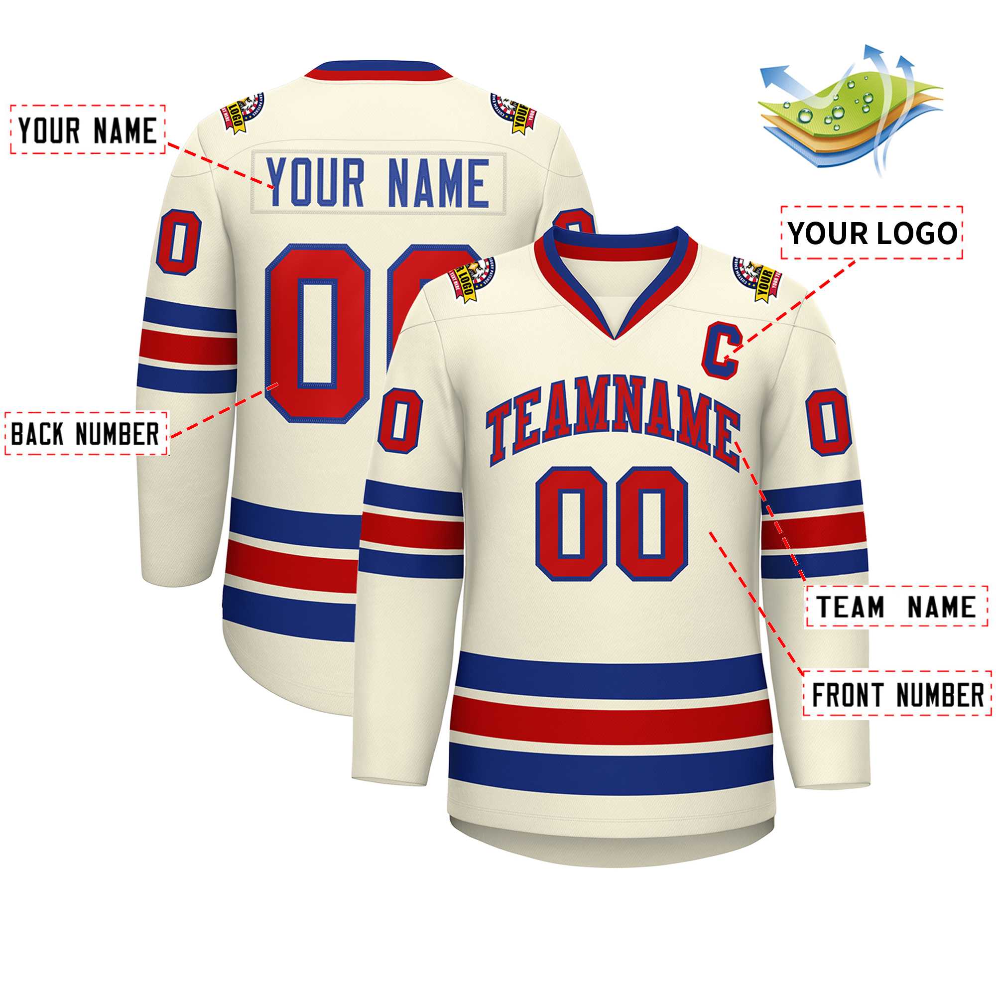 Custom Khaki Red-Royal Classic Style Hockey Jersey